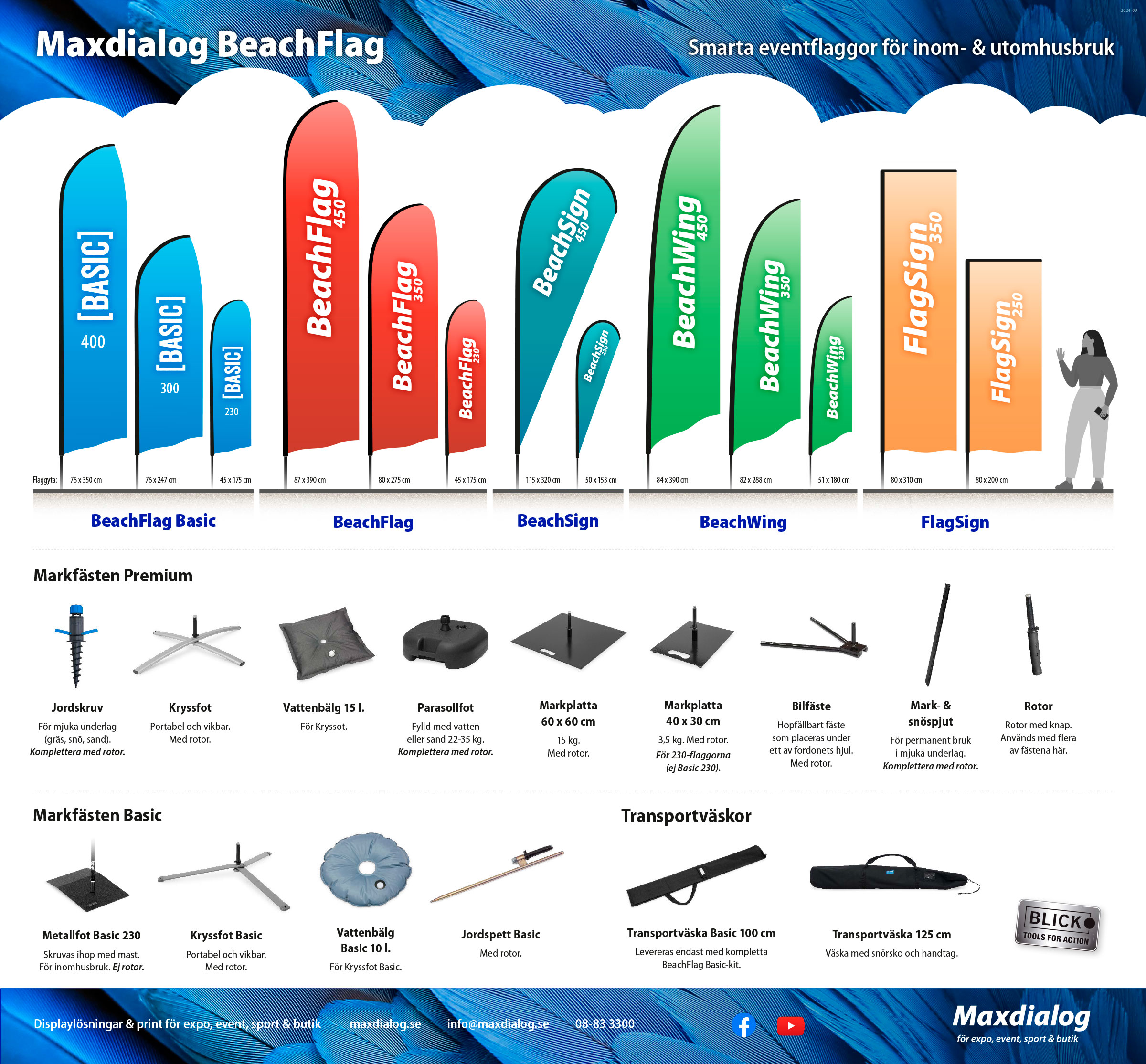 Samtliga våra beachflag och eventflaggor med tillbehör.