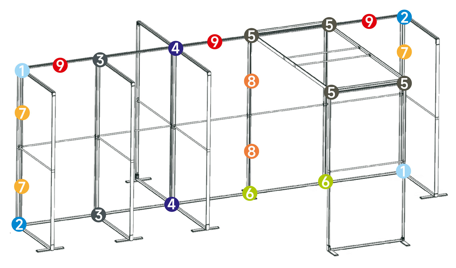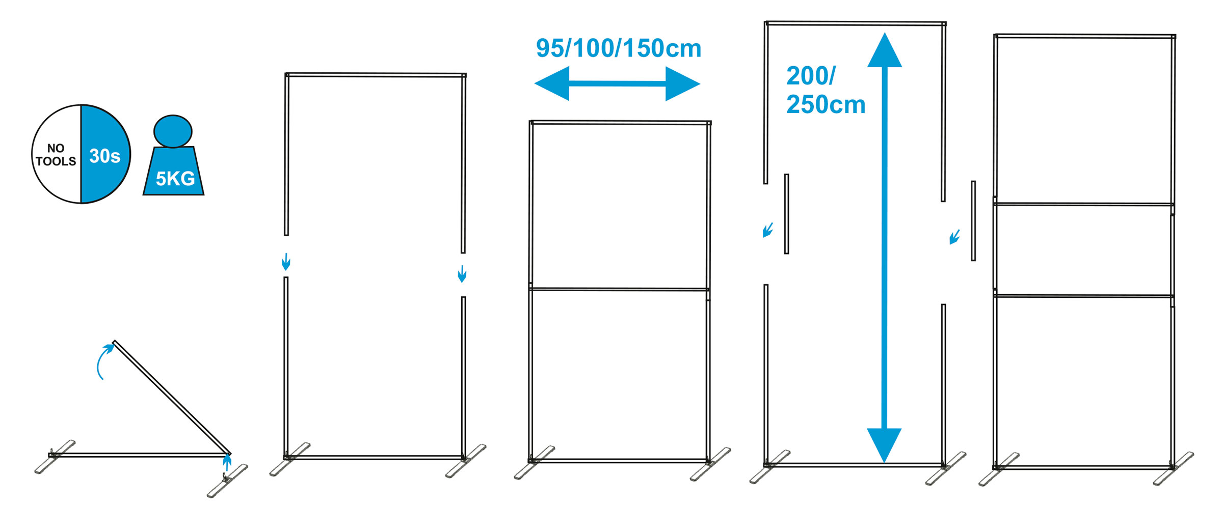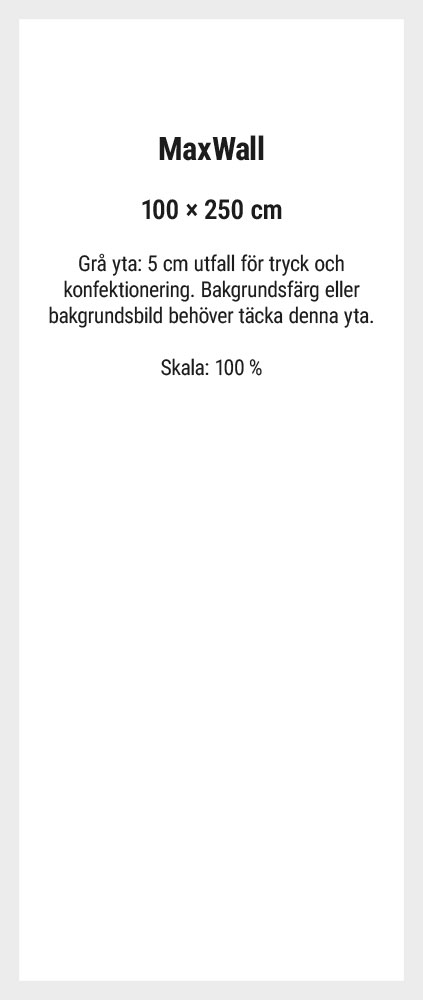 Byggbara väggramar med låg vikt som monteras snabbt och enkelt utan verktyg. Moduler i 95, 100 eller 150 cm bredd. Höjden kan utökas från 200 till 250 cm. Komplettera med hel eller halvfot. MaxWall ger full kreativitet att fritt bygga väggar som är raka, vinklade, trevägs- och fyrvägskopplade.