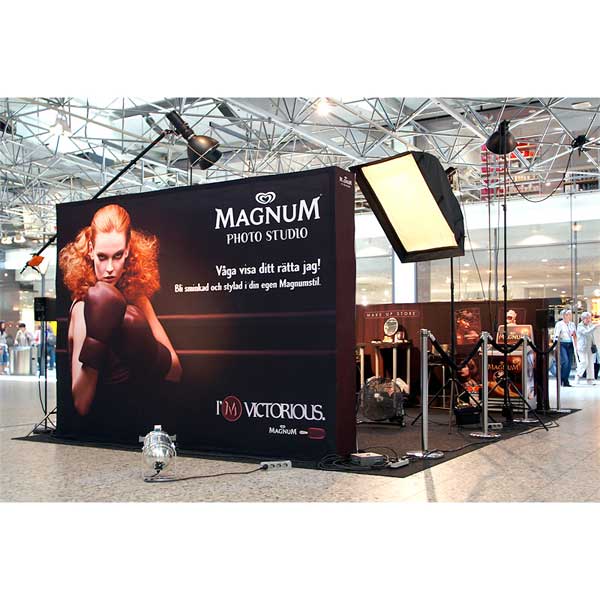 En kombination av Soft Image-väggar som mobil fotostudio för Magnum.